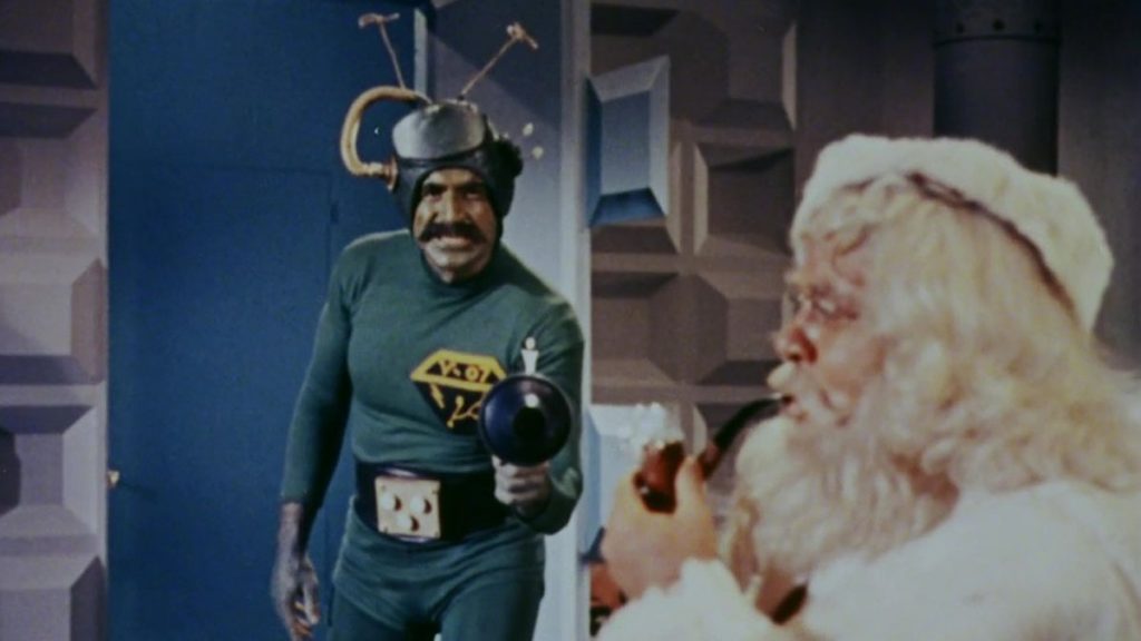 A Martian named Voldar (Vincent Beck) doesn’t agree with Chochem’s plan and attempts to assassinate Santa and put an end to this Earth-influenced folderol. There are green-painted faces, loads of visible Martian-suit zippers, and a song unlike anything you’ve ever heard. The latter will remain with you until your dying day, and that’s if you’re lucky and it doesn’t follow you into the next world. If death has an upside, perhaps it’s being free of the soundtrack of Santa Claus Conquers the Martians. Small mercy, you say? Why don’t you watch the movie first.