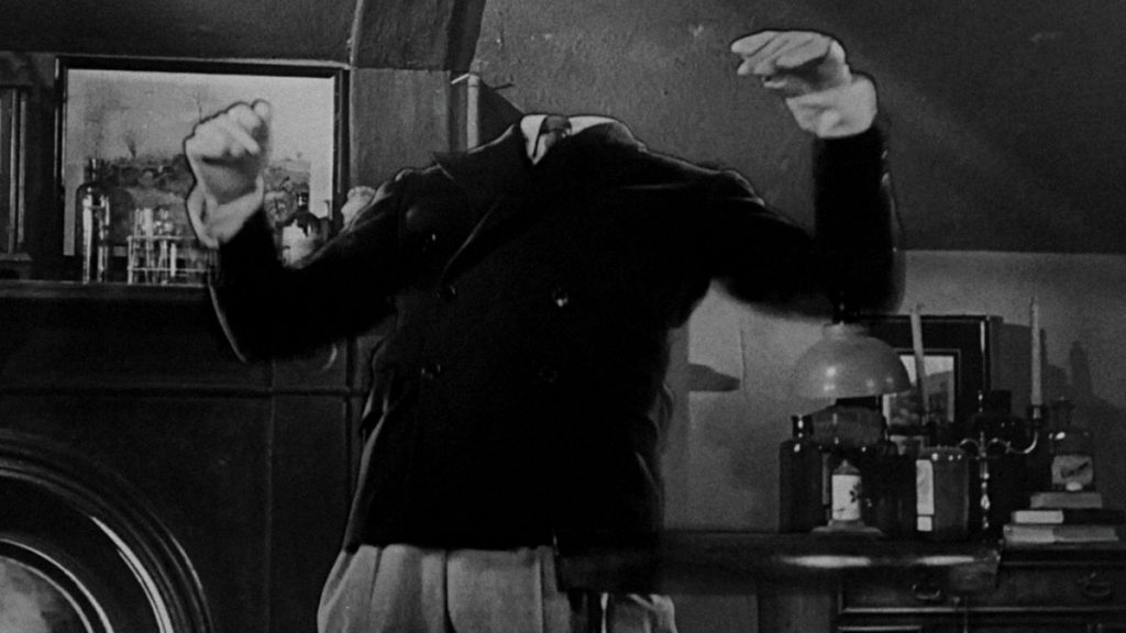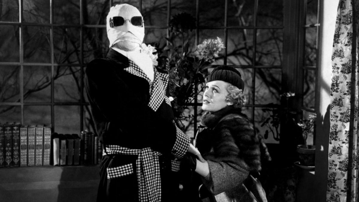 The story is adapted from H.G. Wells’s 1897 novel. Wells could induce scares and laughs in equal measure (try his short story “The Inexperienced Ghost” as a perfect example). Whale was similar, and this picture, like his Bride of Frankenstein, is a mordant-monster tour de force. It’s pre-Code horror for smart people, more intangibly bookish than Edgar G. Ulmer’s very loose 1934 Poe adaptation, The Black Cat. The Invisible Man wasn’t really meant for viewers primarily (and oft-exclusively) interested in fangs being sunk into necks and the overnight guard getting his throat torn out behind a bush. Its brows are rather higher than lower.