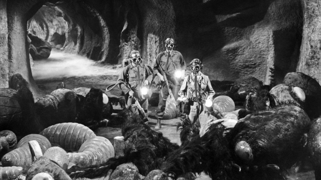 A pre-Gunsmoke James Arness shows off some early acting chops (which combats the narrative that brawn alone landed him the role of Marshal Matt Dillon), but it’s the foreboding mood that is the main character of Them!; unrelieved tension, until the very last. Big bugs tend to detract from critical acclaim, which is why The Thing from Another World has always been talked about as the superior film between these two early-1950s stalwarts, but Them! makes for an altitudinous anthill to surmount. The sound of the ants is arguably the most disturbing noise—an apocalyptical fanfare of advancing ecological hell—in all of horror cinema. You don’t even need to see these guys to be terrified of them, because they’ve already swarmed our imaginations. 🩸